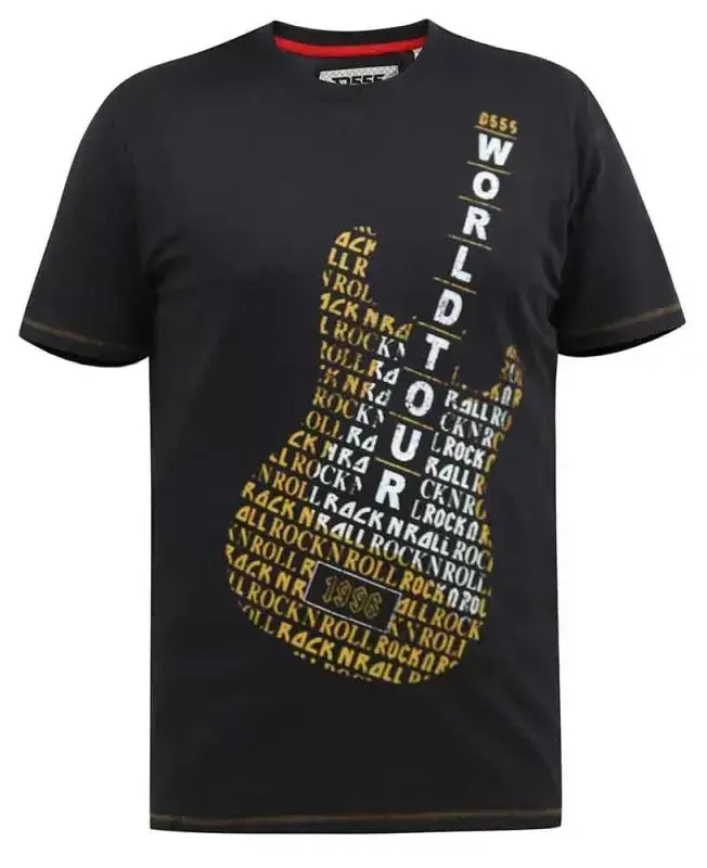 Forvasket svart T-skjorte med gitar silhuett og "WORLD TOUR"-trykk (TALL) - D555