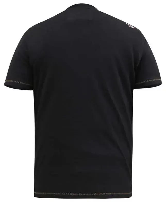 T-skjorten har rund hals, og det er gylne sømmer nederst på T-skjorten samt på ermene. På høyre skulder bak er det et lite D555-broderi. Nederst på T-skjorten er det også et lite merke sydd på med D555.