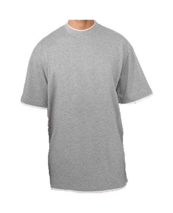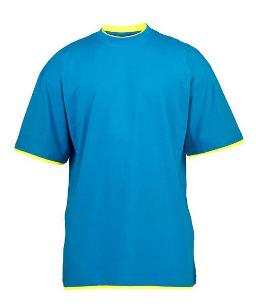 En lang T-skjorte med kontrastfarge for den høye mannen. Kontrasten i kragen, på ermene og nederst på T-skjorten gjør at det ser ut som du har en ekstra T-skjorte under. Smart og lekker T-skjorte i 100% bomull.