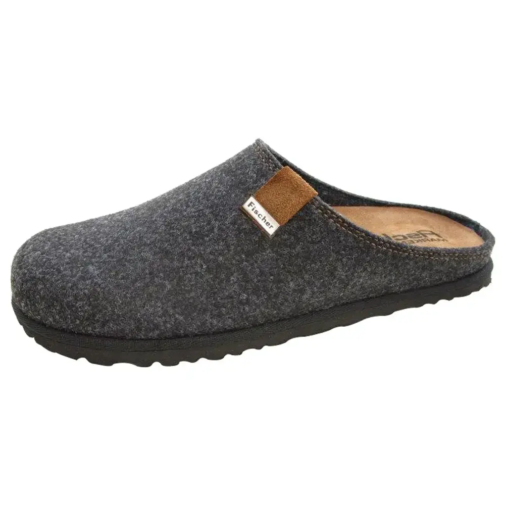 Denne mørkegrå filt-hjemmeskoen fra Fischer er laget for komfort og enkel funksjon i hverdagen. Overdelen er laget av myk filt laget av upcyclet PET, noe som både er et miljøvennlig valg og gir en varm, slitesterk sko til innendørs bruk. Fargen er nøytral og klassisk.