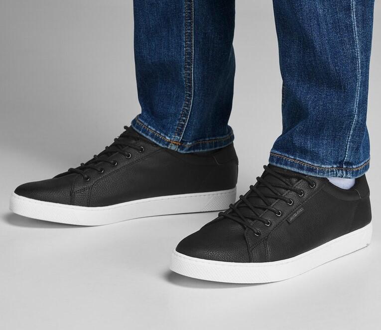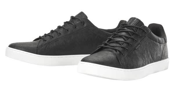 Smarte sneakers fra Jack & Jones, designet som en klassisk tennissko. Skoen er laget i polyuretan som gir skoen en fin finish som minner om lett preget skinn.