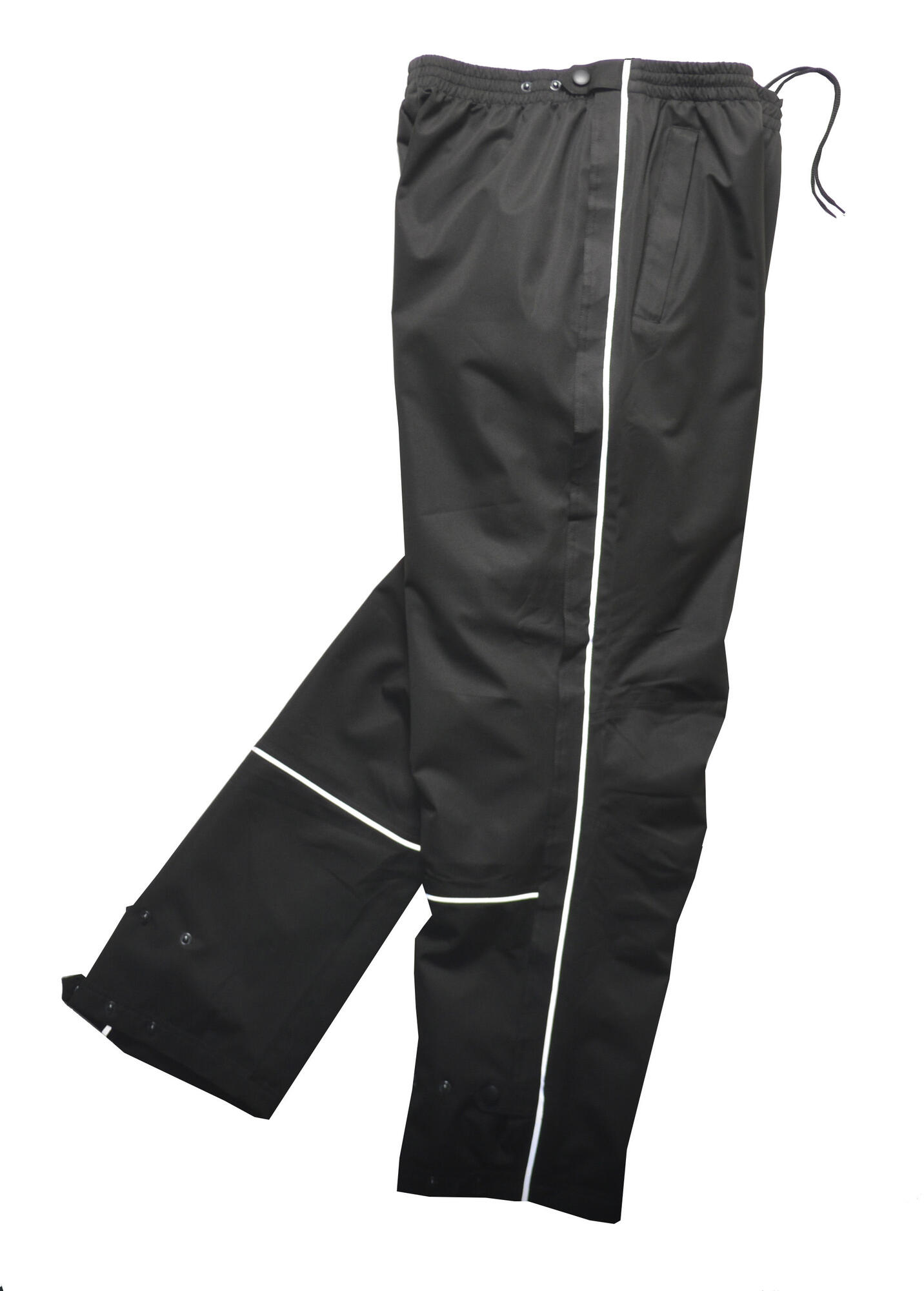 Disse regnbukser / overtrekksbukser er vann- og vindtette samt åndbare. Buksene kan glidelåses opp langs hele benet i begge retninger. Langs benet finnes dessuten refleksstriper.