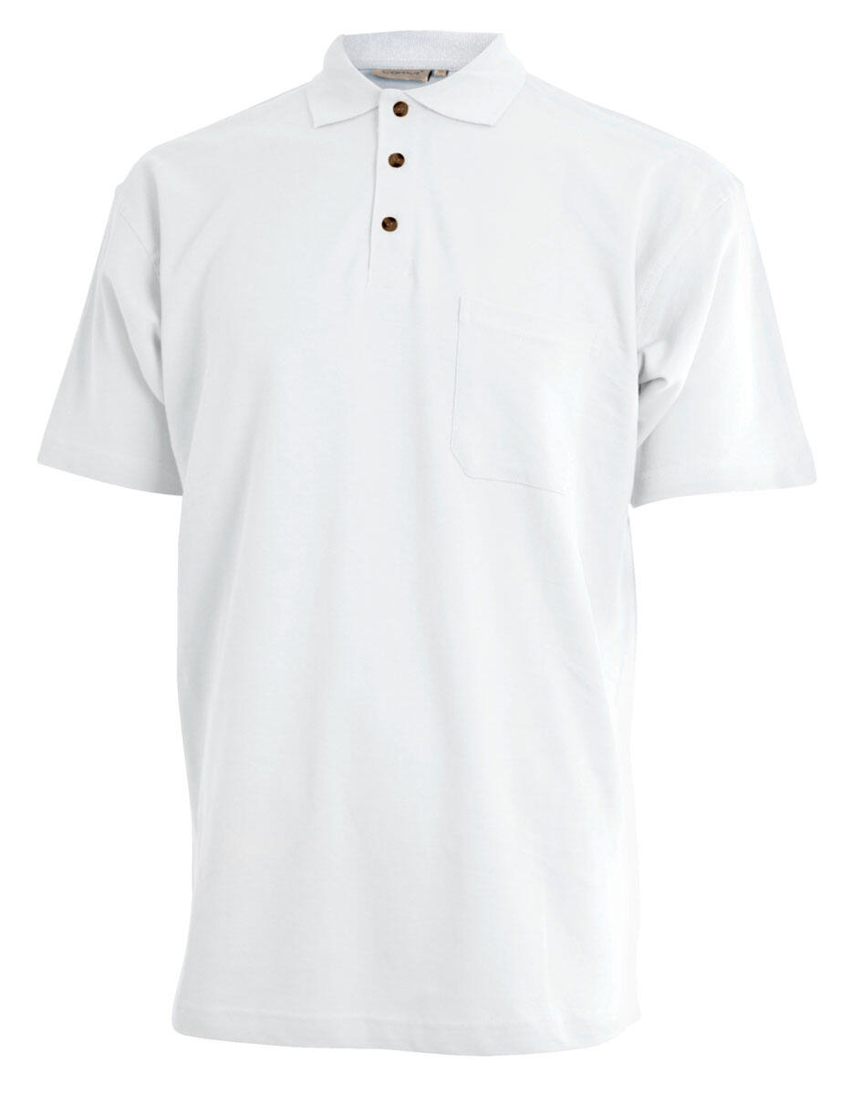 Kortermet polo-skjorte med knapper og brystlomme. Polo-skjorten er piqué-strikket, som betyr at den har en lett vaffelmønstret overflate. Modellen fås i flere forskjellige farger.