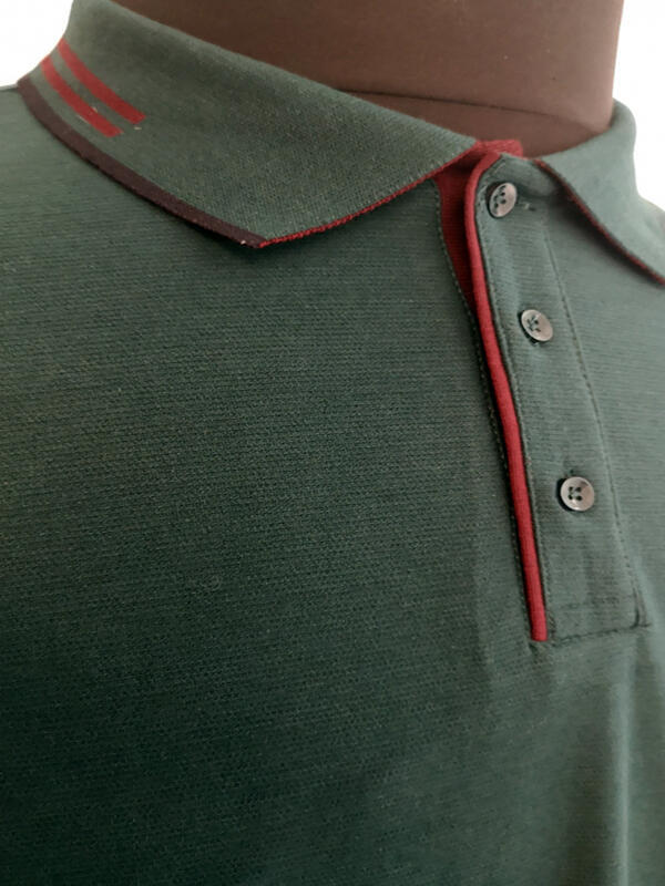 Flaskegrøn polo-shirt med kontrast på krave (L/Æ) - Roberto