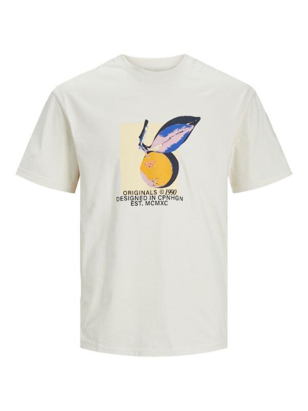 Kremfarget T-skjorte med flerfarget appelsinprint - Jack & Jones