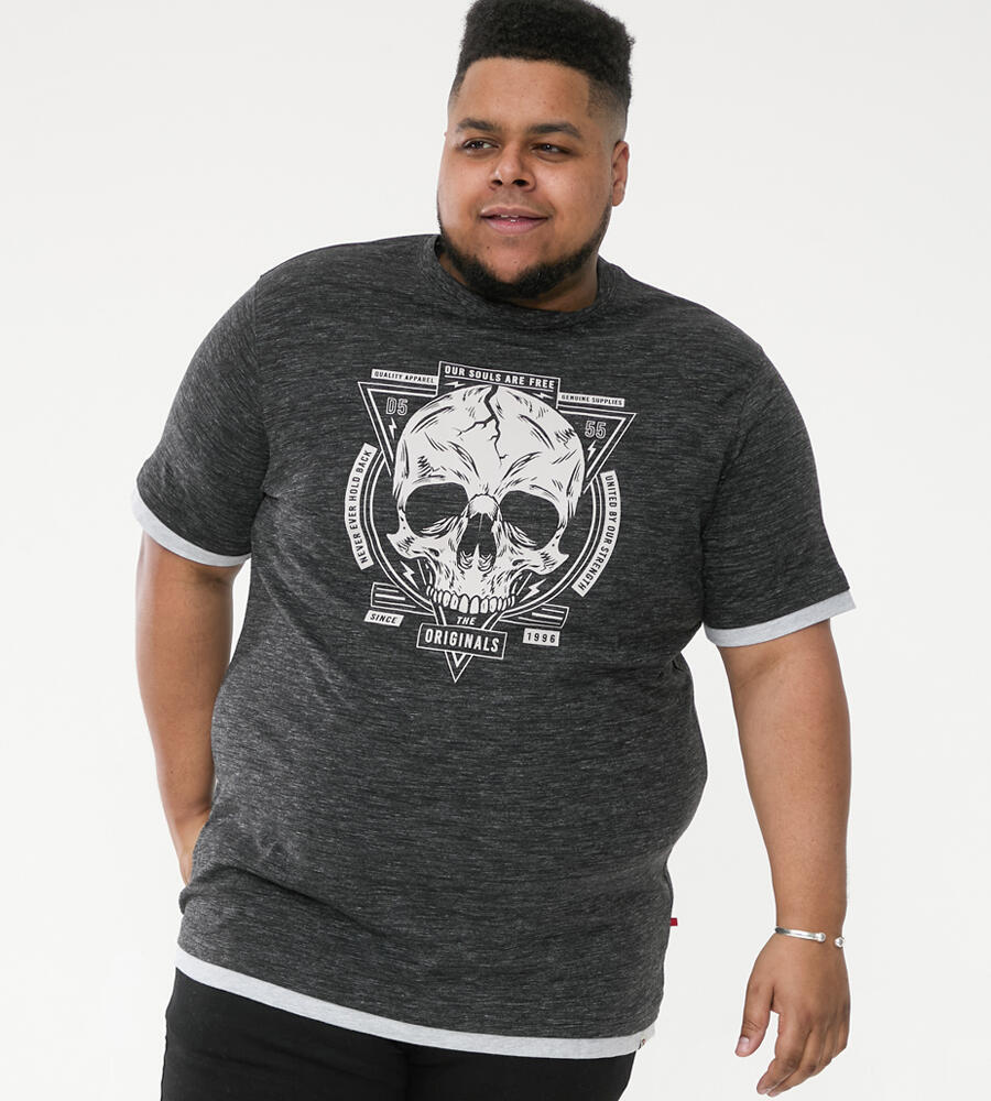 Denne svartmelert T-skjorten har et kult og edgy design med en stor, markant skallegrafikk på fronten.
