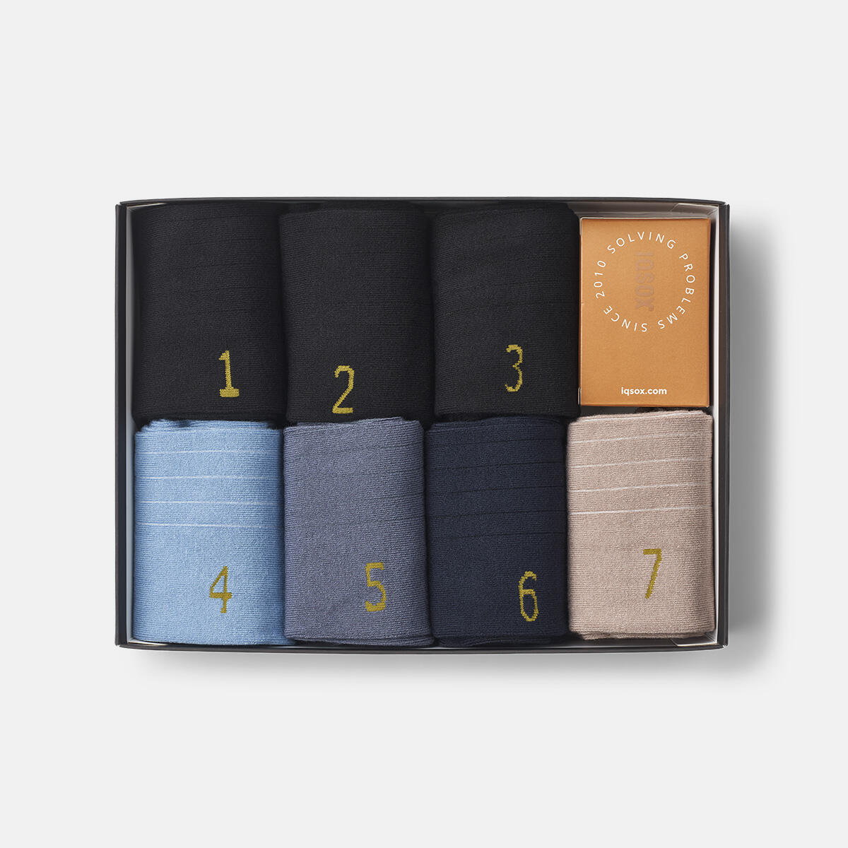 Med denne "Striped Edition"-esken får du de klassiske svarte sokkene, supplert med sokker i fire forskjellige nyanser.
